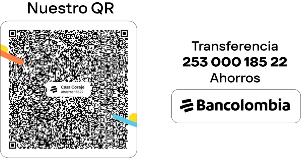 Reporta tu donación y personaliza. Envía el comprobante a direccion@casacoraje.org o a nuestro WhatsApp 3052218614 con: